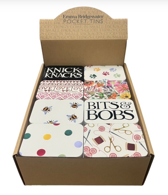 Product details Print ex GST 35 In Stock SKU: EB3530 Emma Bridgewater - Knick-Knacks - Display Box of 32 Rectangle Pocket tins - Size : 115 x 80 x 25mm Add to Wishlist Add to Compare Back to: Display Boxes ×Close Emma Bridgewater First producing Matthew Rice's tinware and then faithfully reproducing Emma Bridgewater's designs in tin. Our top-selling brand. https://www.emmabridgewater.co.uk/